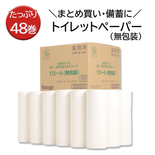 130mトイレットペーパー 48巻まとめ買い! 紙芯のゴミが出ない、個別包装を省き、無包装 トイレットペーパー 2021.08.17 2021.10.06 6,000~6,999ptキッチン・バス・トイレ・掃除・洗濯用品グリーン住宅ポイント交換商品一覧トイレットペーパートイレ用品家事負担軽減株式会社ドリーム・ワークショップ 商品コード:E8252-0172 6,900pt