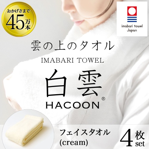 今治タオル 雲の上の肌触り 白雲 フェイス タオル ( クリーム フェイスタオル 4枚入り 箱入れ ギフト ) 2021.08.13 2021.10.06 6,000~6,999ptキッチン・バス・トイレ・掃除・洗濯用品グリーン住宅ポイント交換商品一覧タオルバス用品家事負担軽減株式会社ファイブ 商品コード:E9059-0175 6,500pt