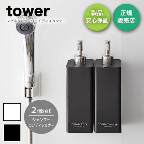 tower (タワー) マグネットツーウェイディスペンサー 2個セット 【ブラック】 4259 4261 山崎実業 詰替 容器