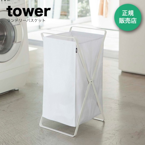 tower (タワー) ランドリーバスケット 【ホワイト】2484 山崎実業 ランドリー収納 持ち運び 簡単 機能的