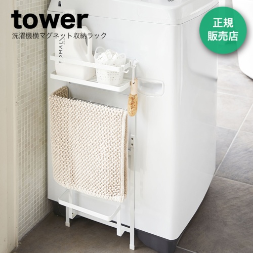 商品名tower (タワー) 洗濯機横マグネット収納ラック 【ホワイト】3307 山崎実業 マグネット 収納 バスマット ラック
