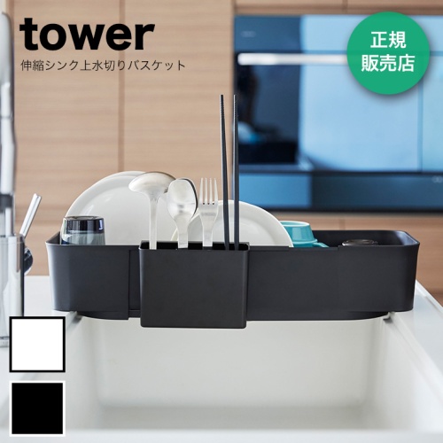 tower (タワー) 伸縮シンク上水切りバスケット 【ブラック】 4243 山崎実業 水切りかご スリム 食器洗い
