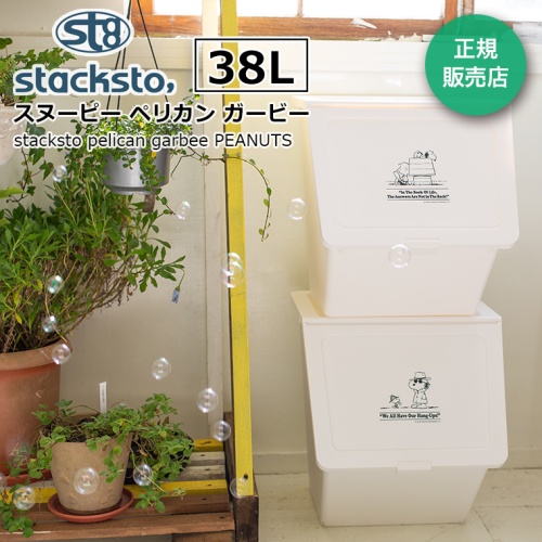 シンプル おしゃれ キッチン収納 キッチン雑貨 生活雑貨 スヌーピー フタ付 分別 ダストボックス フロントオープン ホワイト 白 38リットル 38L stacksto pelican garbee PEANUTS スタックストー ペリカンガービー ピーナッツ スタッキング 重ねる収納 重ねて収納 JoeCoolプリント