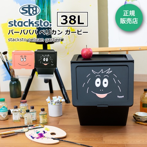 シンプル おしゃれ キッチン収納 キッチン雑貨 生活雑貨 バーバパパ バーバモジャ フタ付 分別 ダストボックス フロントオープン ブラック 黒 38リットル 38L stacksto pelican garbee スタックストー ペリカンガービー スタッキング 重ねる収納 重ねて収納