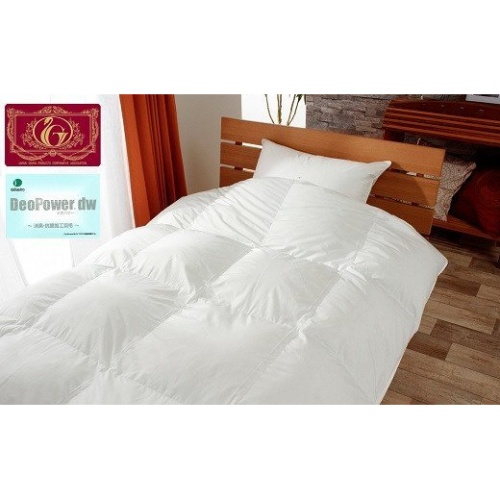 臭いの少ない羽毛布団 (肌掛け) エクセルゴールドクイーン 210×210cm ホワイトダックダウン90% (日羽協ラベル付)