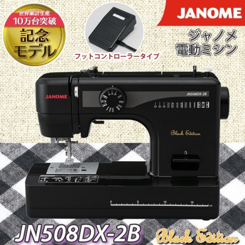 ジャノメ 電動ミシン JN508DX-2B ブラックエディション(黒) 本体 フットコントローラー付き