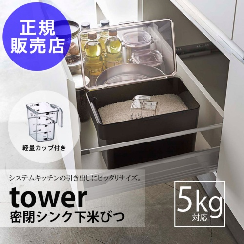 密閉シンク下米びつ「tower(タワー)」軽量カップ付(5kg)[ブラック]山崎実業 3378 YAMAZAKI 正規販売店
