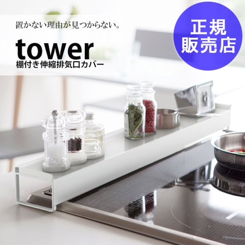 棚付き伸縮排気口カバー タワー ホワイト 3445 山崎実業 YAMAZAKI 正規販売店 おしゃれ コンロ グリル 油はね