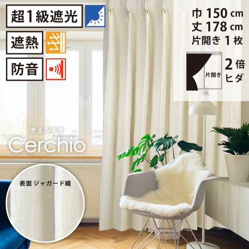 商品名【 遮光 防音 ドレープ カーテン ジャガード織 】洗濯OK チェルキオ 2倍ヒダ (巾150cm 丈178cm) 片開き 1枚