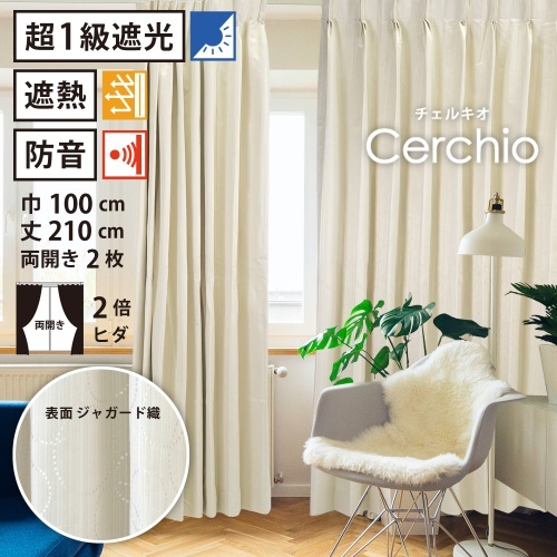 | 商品名 | 【 遮光 防音 ドレープ カーテン ジャガード織 】洗濯OK チェルキオ 2倍ヒダ (巾100cm 丈210cm) 両開き 2枚 |