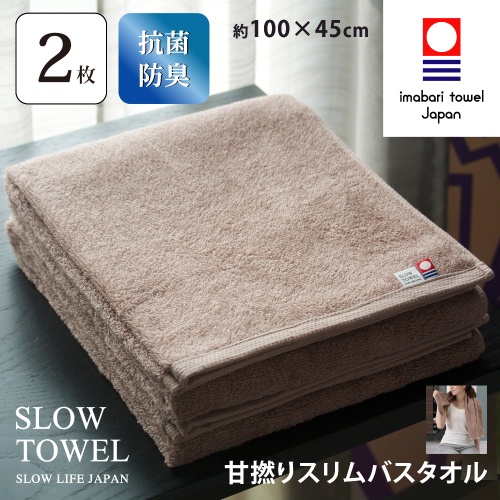 今治タオル 2枚セット 抗菌防臭加工 しっかり甘撚り スリム バスタオル ( ライトブラウン ) 約45×100cm 日本製