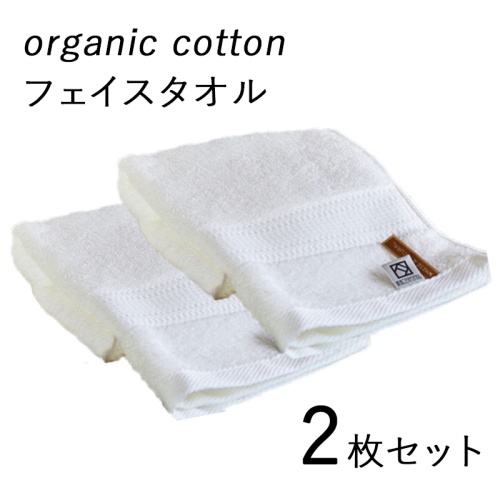 日本製 オーガニックコットン フェイスタオル 【ホワイト】2枚セット