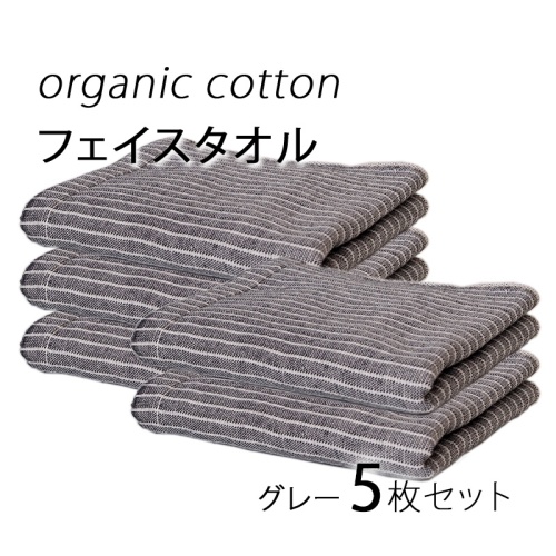 今治 オーガニックコットン フェイスタオル 5枚セット【シックグレー】トラッドストライプ