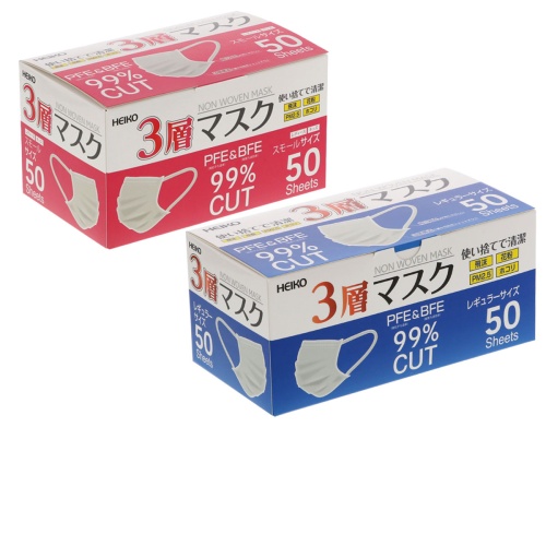 使い捨てで清潔 マスク 50枚+50枚!不織布3層マスク レギュラー+スモール サイズ マスク 各1箱