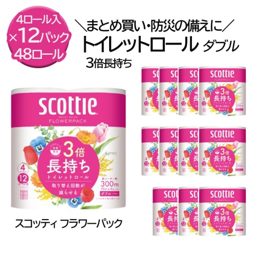 | 商品名 | 3倍長持ち スコッティ フラワーパック トイレットペーパー ダブル 48ロール 収納 コンパクト |