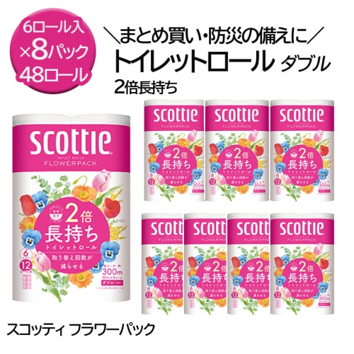 | 商品名 | 2倍長持ちスコッティ フラワーパック トイレットペーパー ダブル 6ロール×8パック=48ロール 収納 コンパクト |