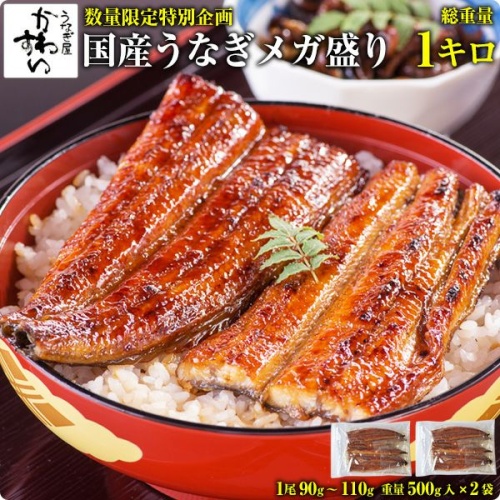 商品名【うなぎ屋かわすい】 国産うなぎ長焼き1kgセット(8本~12本入)エコ包装