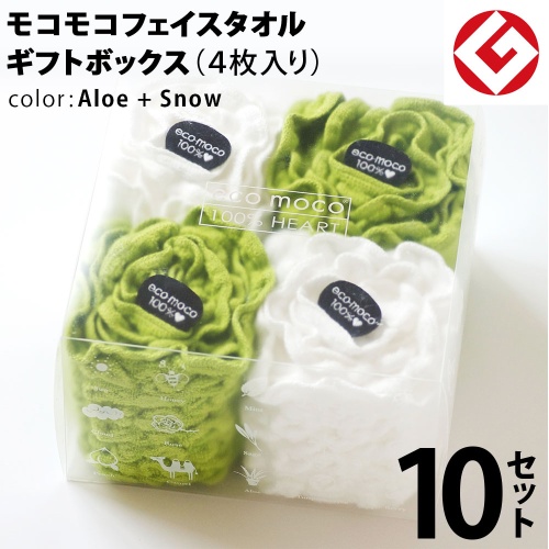 今治 エコモコ フェイスタオル ギフトBOX入り 4枚 × 10セット (アロエ + スノー) 日本製 ( 無撚糸 )