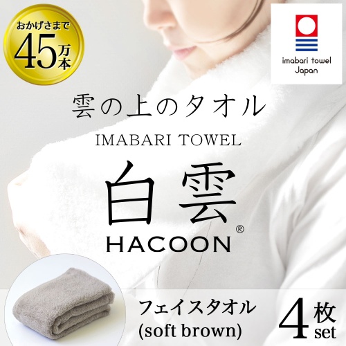 今治タオル 雲の上の肌触り 白雲 フェイス タオル ( ソフトブラウン フェイスタオル 4枚入り 箱入れ ギフト )