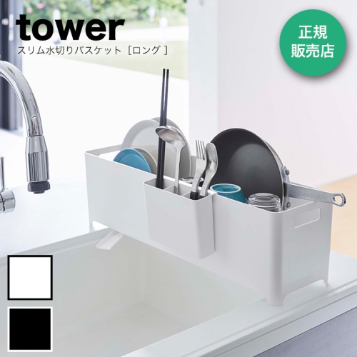 tower (タワー) スリム水切りバスケット ロング 【ホワイト】 4314 山崎実業 水切りかご 食器洗い 水切りラック